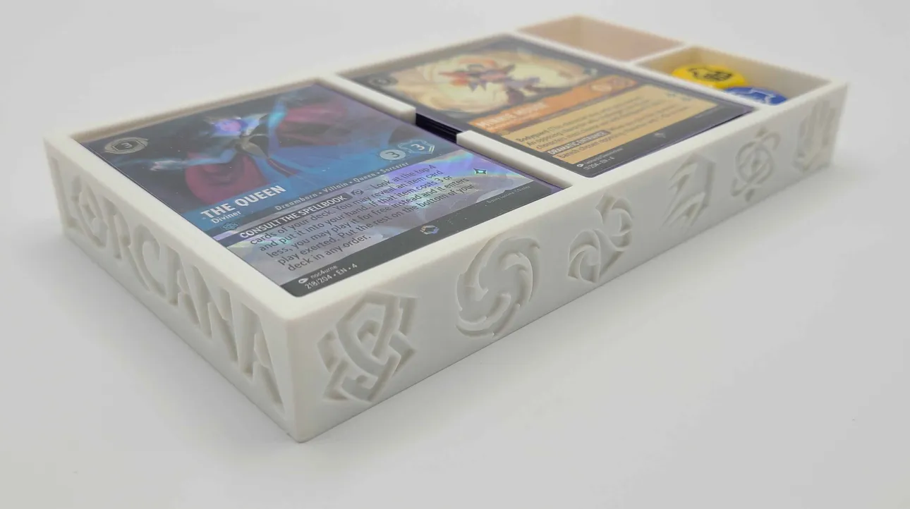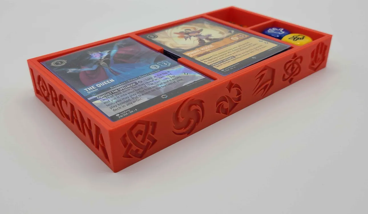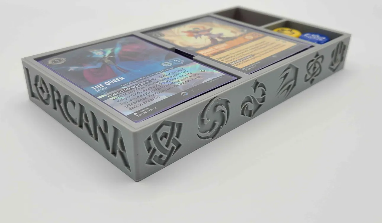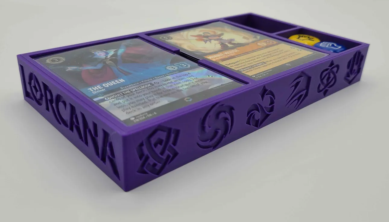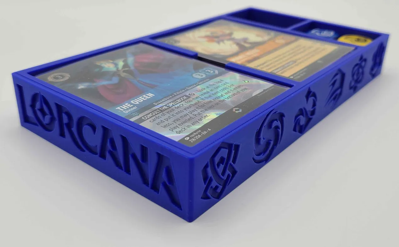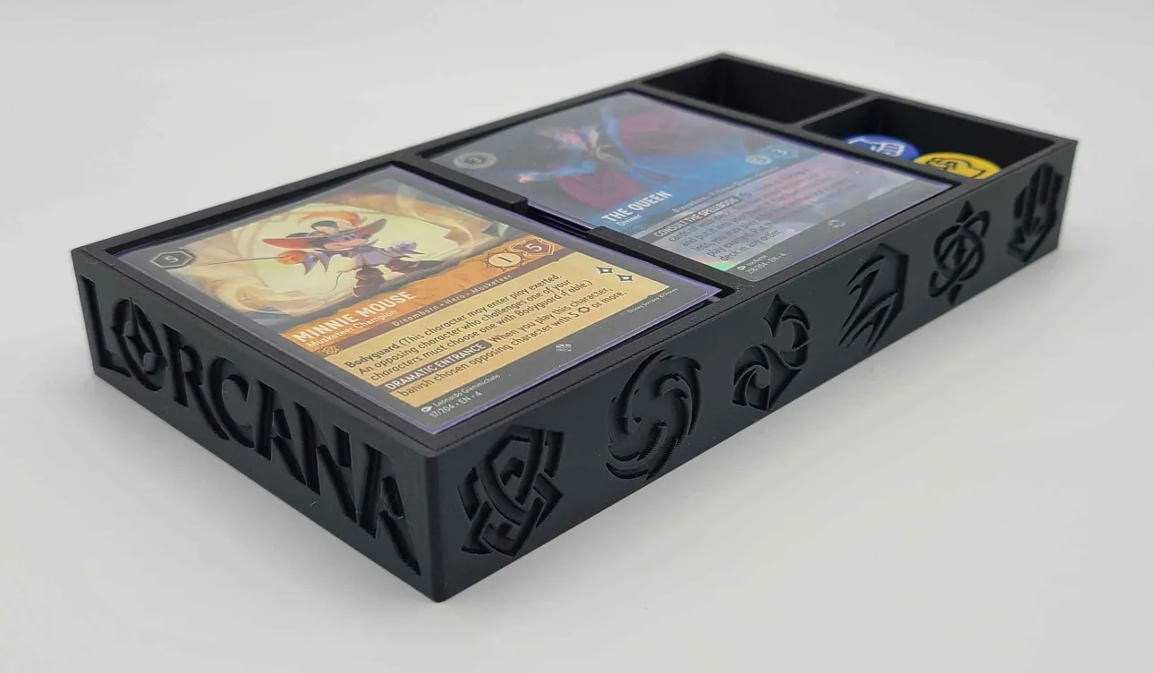 Transform your old VHS case into a versatile storage solution with our custom 3D printed insert. Designed specifically for Lorcana decks, this insert features compartments perfectly sized to secure your cards, ensuring they stay organized and protected.