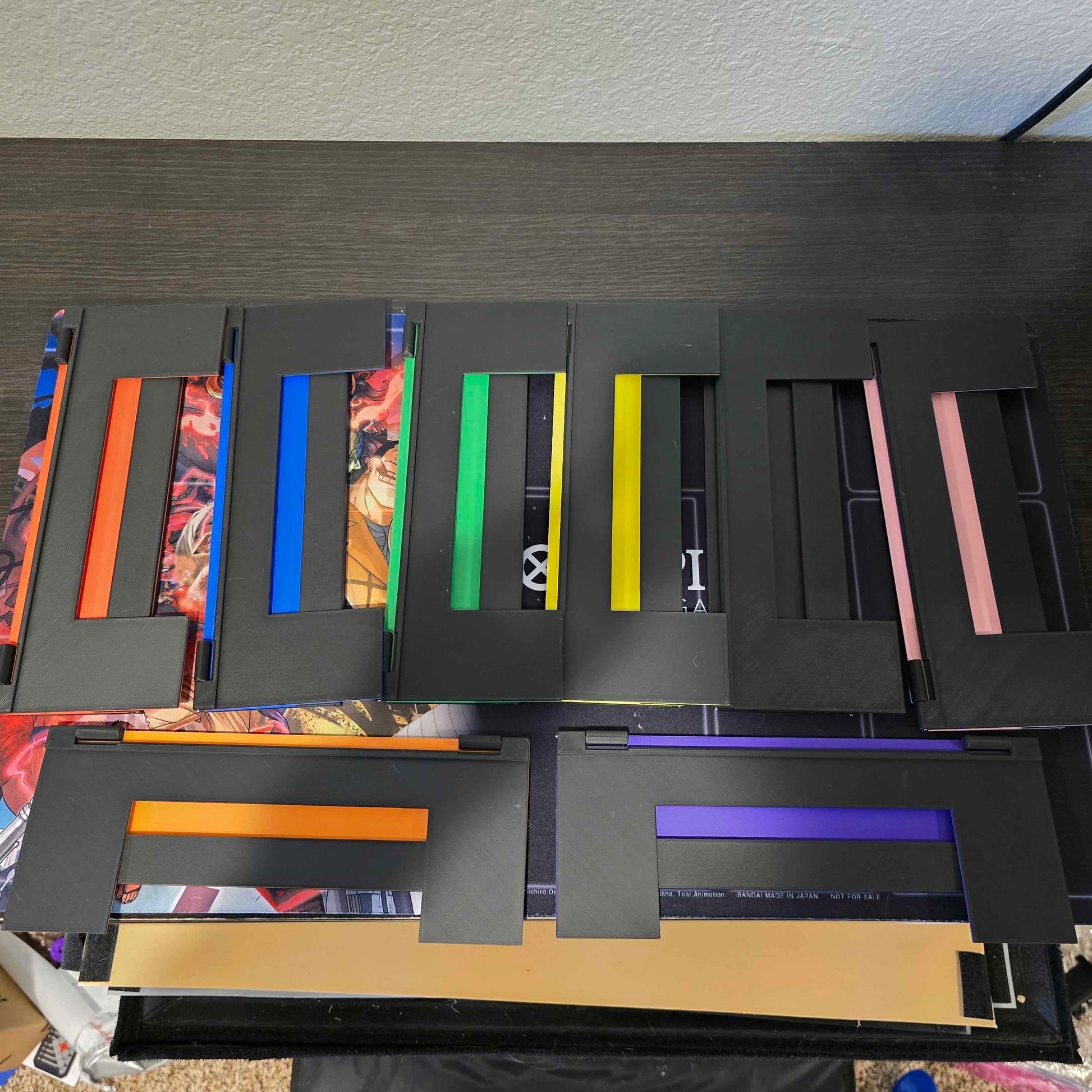 The Portable Hanging Card Rack is the ultimate accessory for trading card game players who want convenience without compromise. Inspired by eastern tournament play, this innovative rack slides neatly under your playmat and hangs securely off the table, giving you a dedicated space to organize and display your hand.